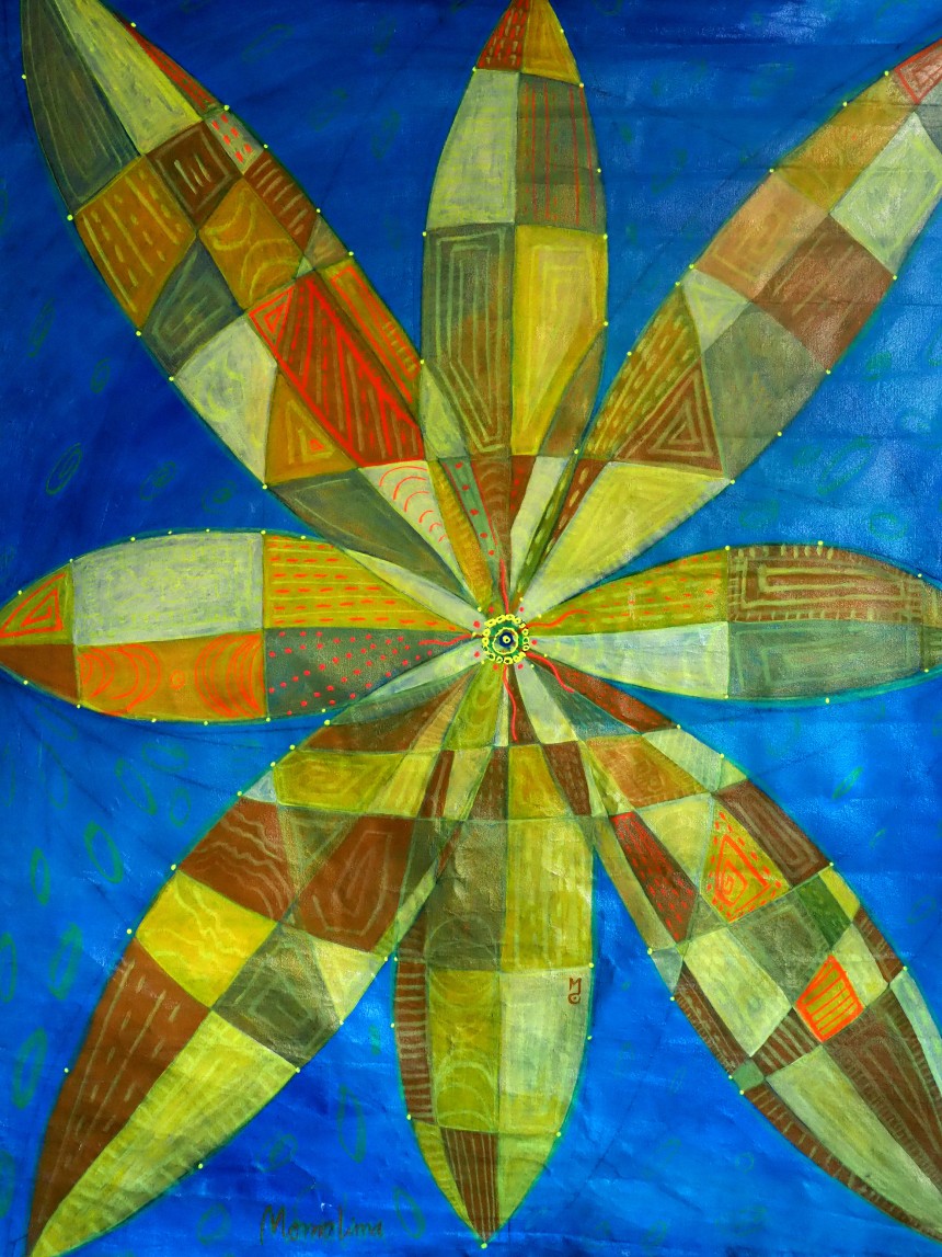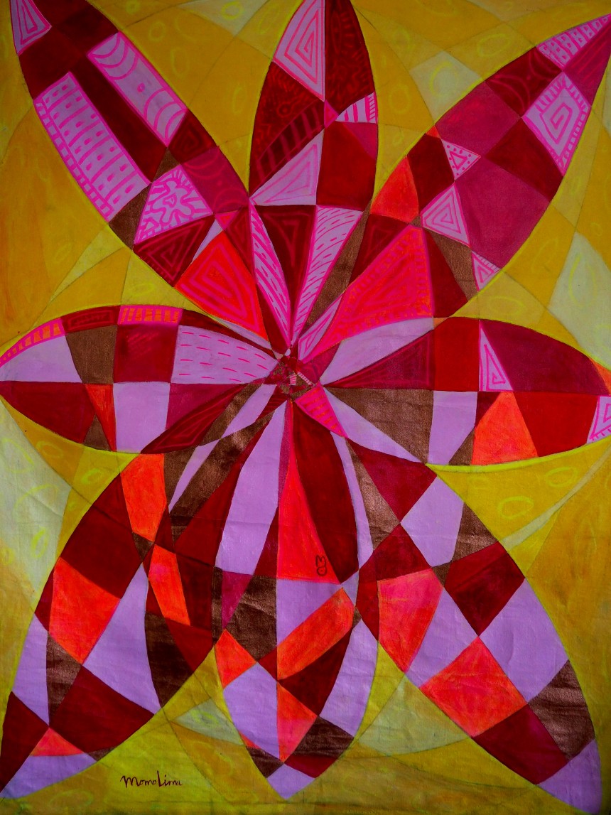 Momo Lima, New York 2024. Mixmedia on canvas. (41X60inch) (104x152cm). A yellow flower is primarily associated with spreading...