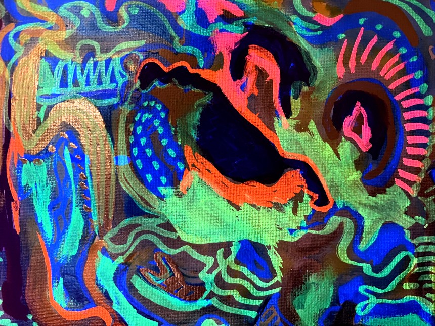 Dandelion under neon 61X47" Acrylic on canvas Momo Lima, New York 2024-2026 $ 3,000 USD